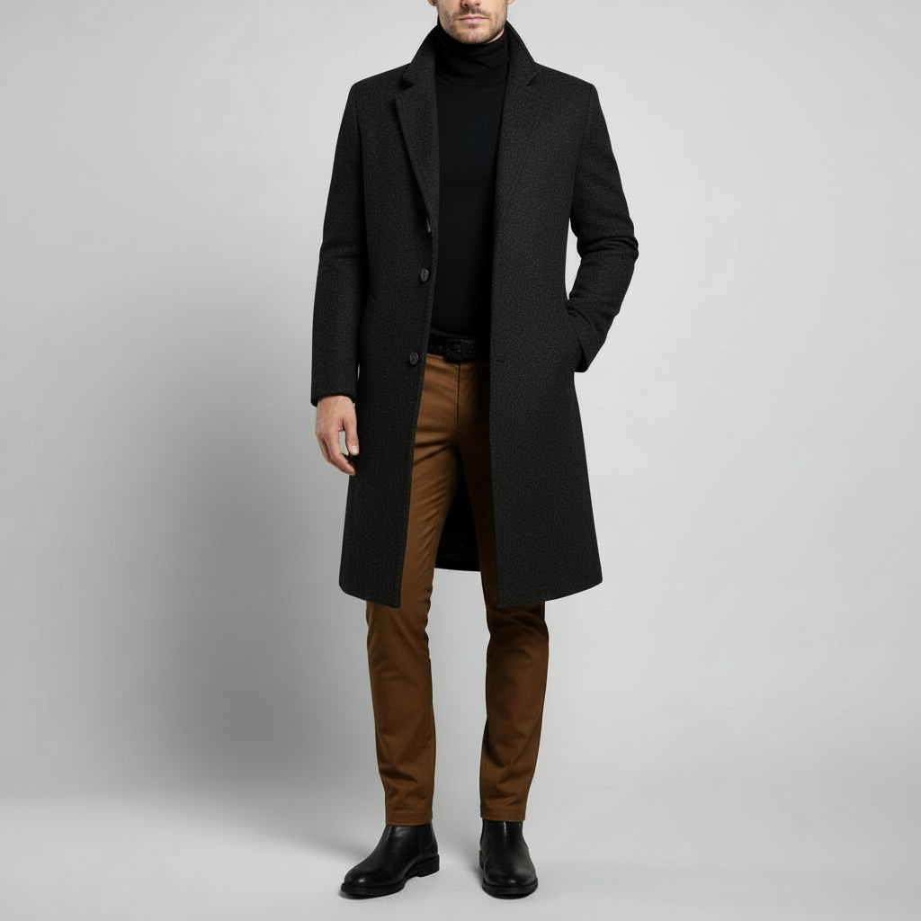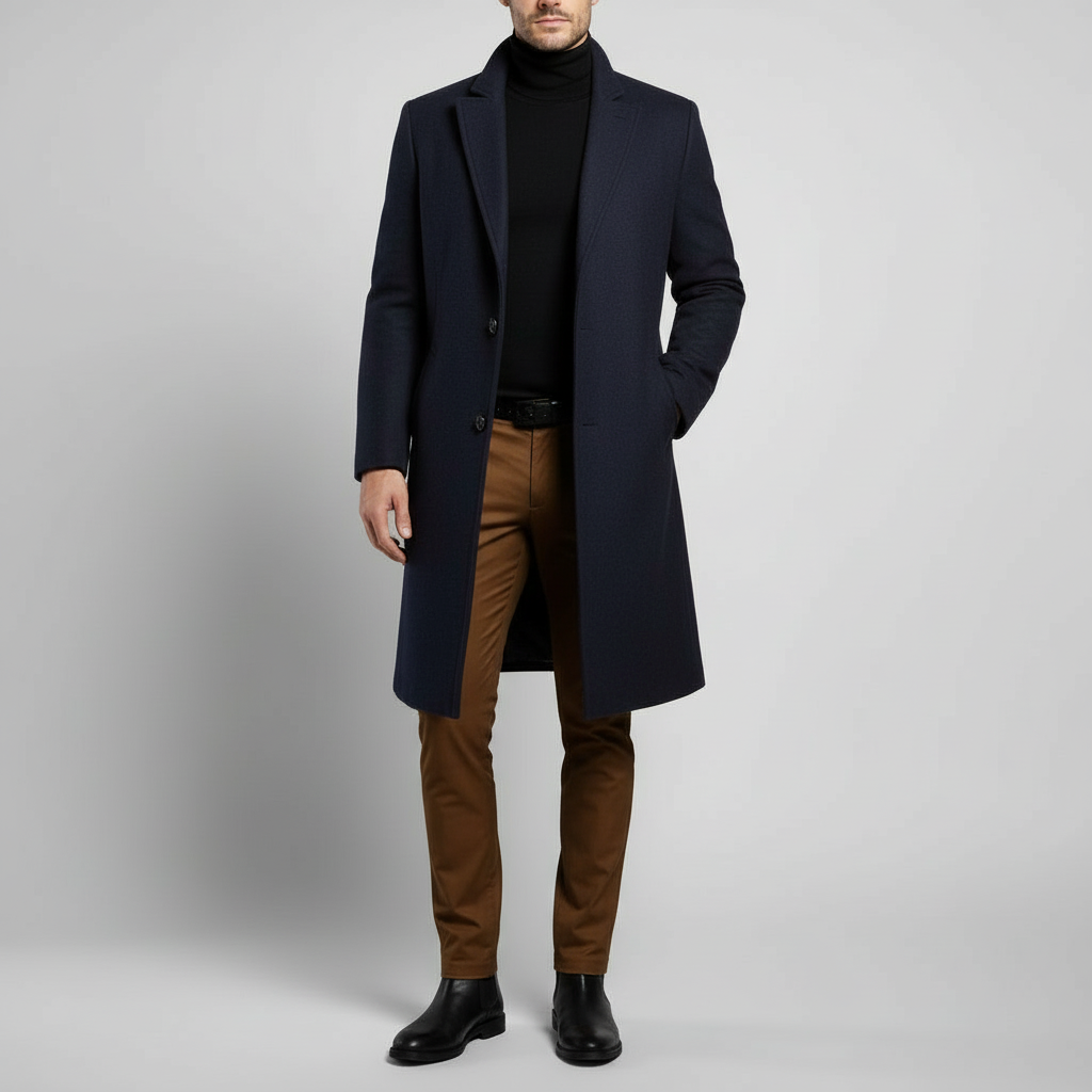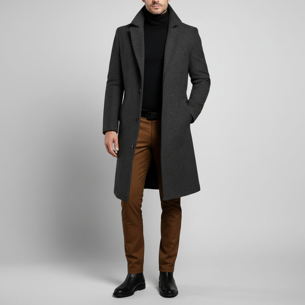 Ein Mantel, der Ihre Garderobe sofort aufwertet – elegant, maskulin und vielseitig kombinierbar.
