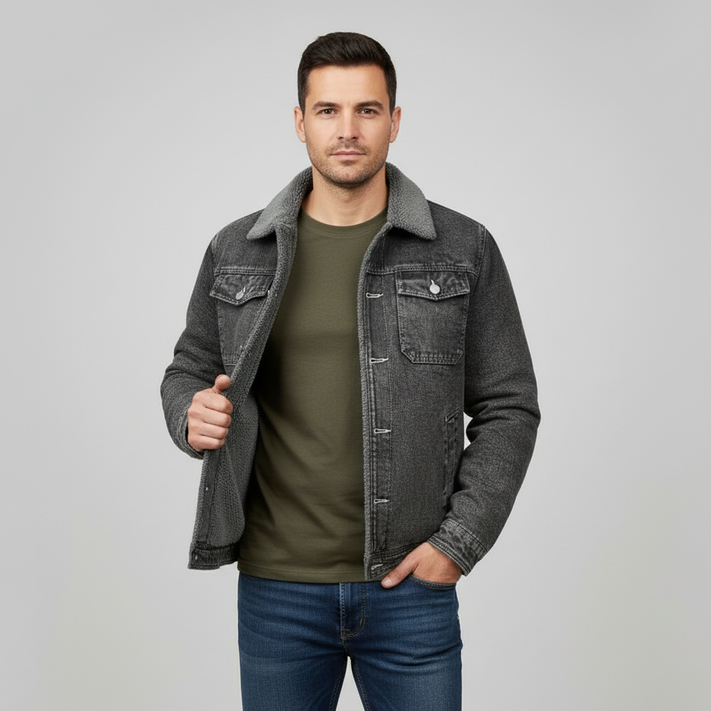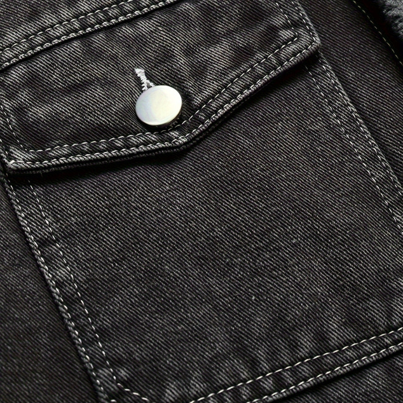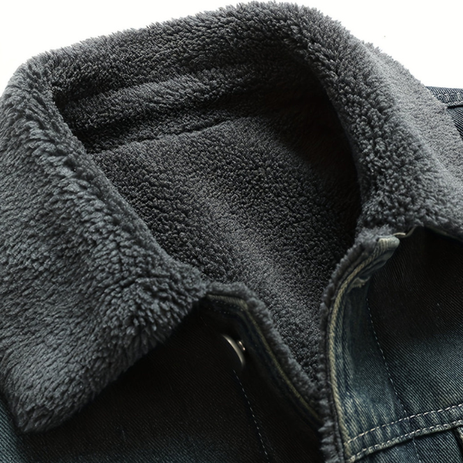Dieser Vintage-Jeansmantel mit warmem Futter bietet ultimativen Komfort und einen coolen Look. Perfekt für lässige Outfits im Herbst und Winter.