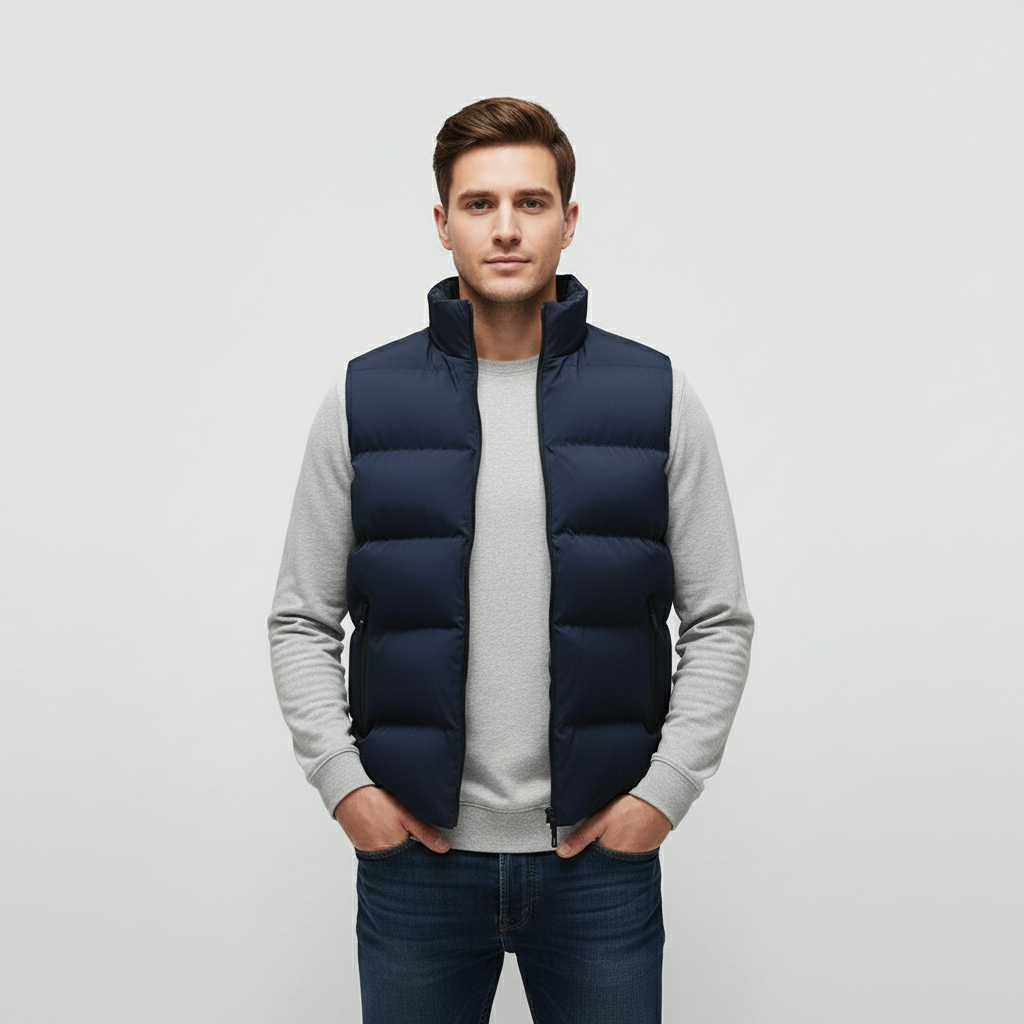 Eine Weste für Männer, die Funktion, Stil und Minimalismus smart verbinden möchten.