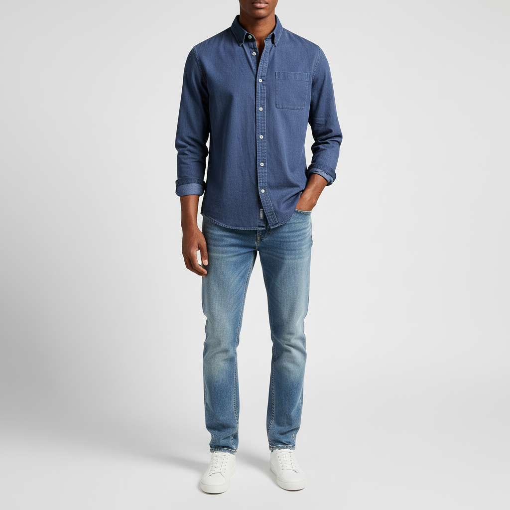 Der klassische Button-Down-Kragen, die strukturierte Oberfläche und die dezente Brusttasche sorgen für einen eleganten, vielseitigen Look, der perfekt zu Jeans, Chinos, Strick oder unter einem Blazer passt – ideal für Business und Freizeit.