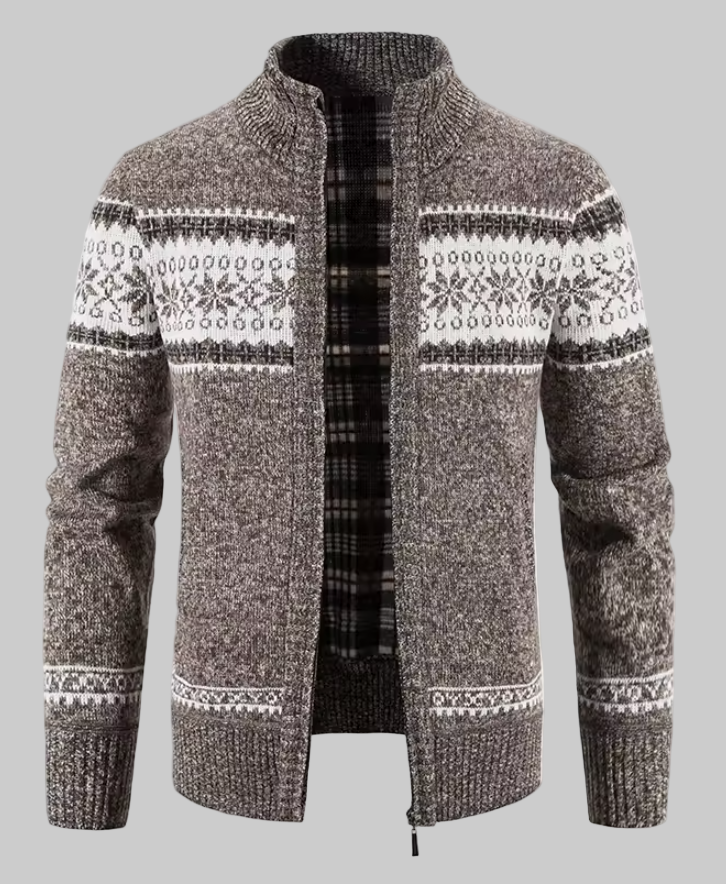 Die Giacca Maglia Alpina ist eine luxuriöse, warm gefütterte Strickjacke, inspiriert von klassischer italienischer Bergmode. Das feine Norwegermuster verleiht ihr eine zeitlose, alpine Ästhetik, während das weiche, karierte Innenfutter für angenehme Wärme an kalten Tagen sorgt.