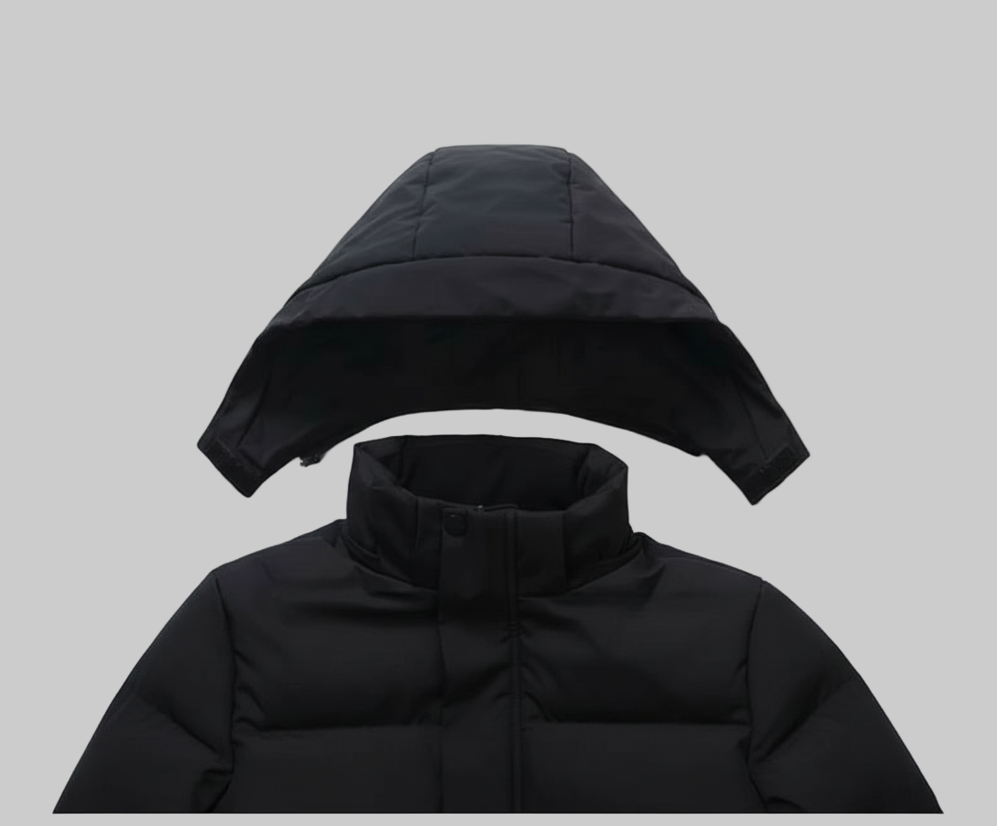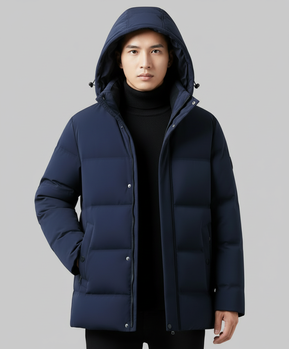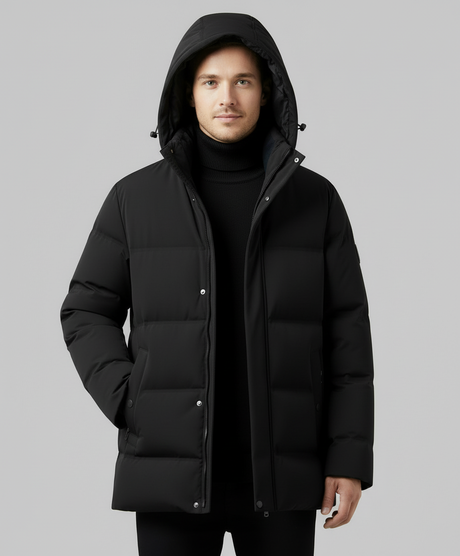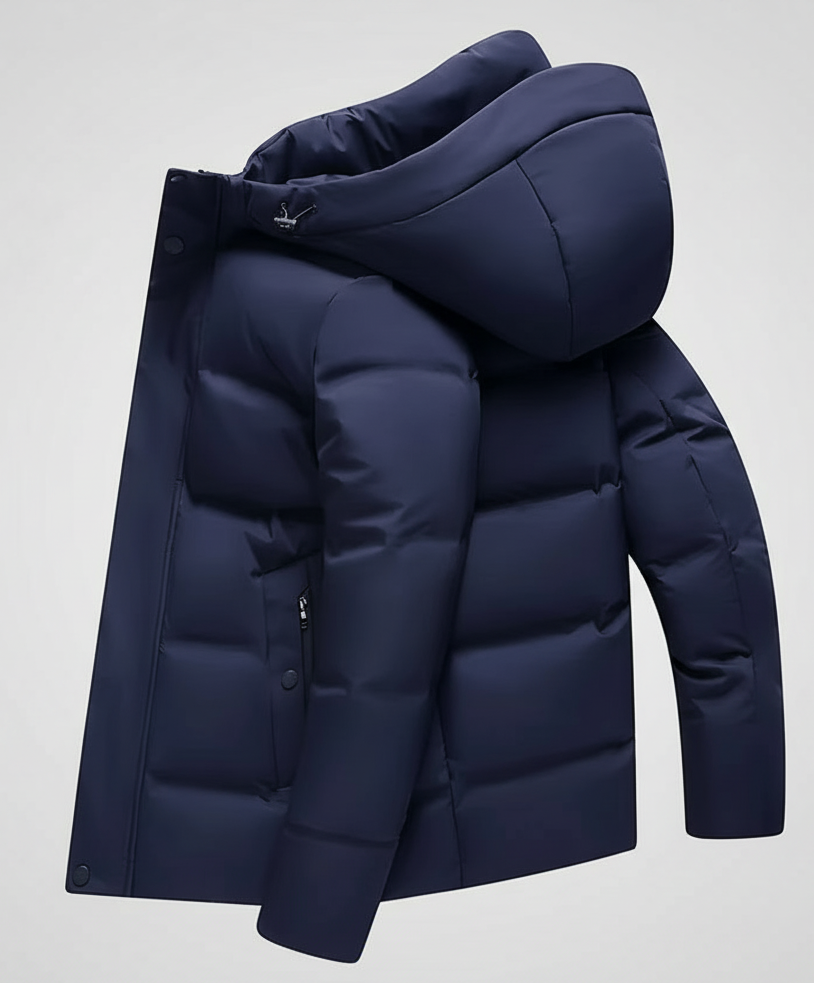 Die gefütterte Kapuze, der hohe Kragen und der saubere, strukturierte Schnitt erzeugen eine klare, maskuline Silhouette – perfekt für den Alltag, City-Winterlooks und kalte Outdoor-Momente. Dank der praktischen Reißverschlusstaschen und des strapazierfähigen Verschlusses ist diese Jacke nicht nur stilvoll, sondern auch absolut alltagstauglich.