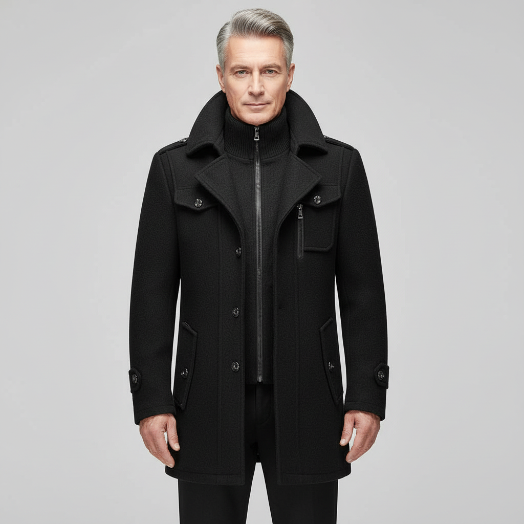 Die Savona Woll Jacke verbindet die Eleganz eines klassischen Wollmantels mit der Funktionalität einer modernen Winterjacke. Die Kombination aus hochwertiger Wollmischung, integriertem Strick-Inlay und markanter Silhouette sorgt für Wärme, Struktur und einen zeitlosen Premium-Look. Ideal für Büro, Alltag oder stilvolle Abendstunden – für Männer, die Wert auf Klasse, Komfort und diskrete Luxusdetails legen.